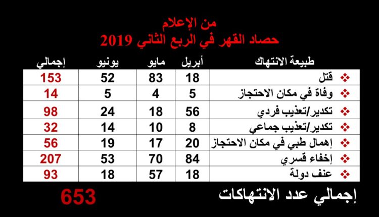 من الإعلام: أرشيف القهر في الربع الثاني من 2019 اصداراتبرنامج مناهضة العنف والتعذيب On يوليو 1, 2019 Share يمكنكم الإطلاع على أرشيف القهر في الربع الثاني من 2019 أبريل – مايو – يونيو هنا أبريل، مايو ، يونيو 2019أرشيف القهرمصر Share FacebookTwitterWhatsAppGoogle+